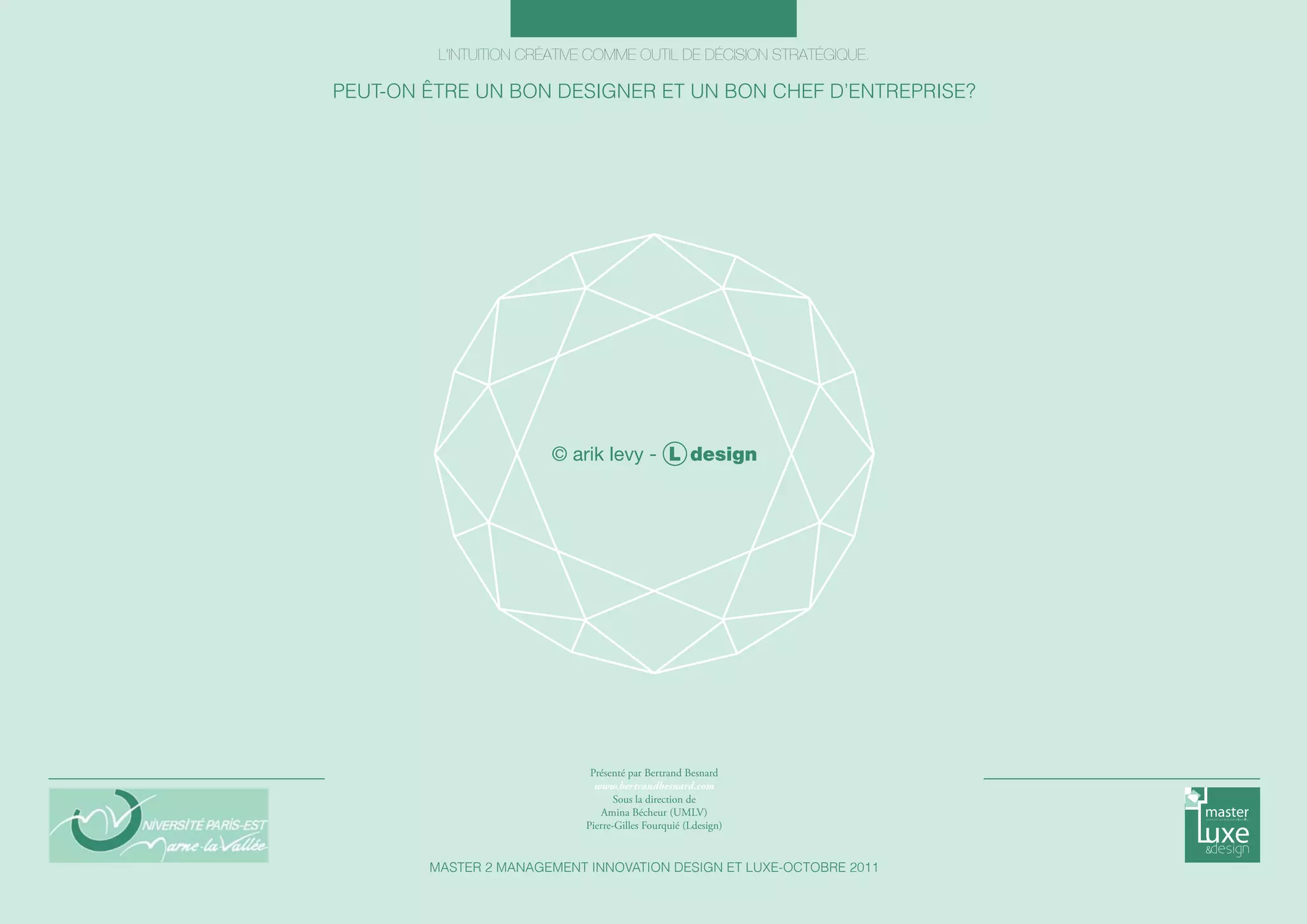 Le document explore la dualité d'être à la fois un designer et un chef d'entreprise à travers l'exemple d'Arik Levy, un designer reconnu, et la gestion de son agence, ldesign. Il examine comment la créativité et l'intuition influencent les décisions stratégiques et la gestion des projets, en soulignant les défis et les réussites dans la création de valeur à travers le design. La recherche conclut sur l'importance d'adapter les processus créatifs en fonction des différents types de clients et de produits tout en considérant la complexe absence d'un département marketing au sein de l'agence.