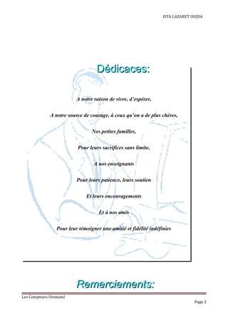 Le rapport de stage de Daoudi Ibrahim présente son expérience au sein des Comptoirs Unimatel en tant que technicien spécialisé en réseaux informatiques, où il a réalisé l'installation de serveurs Ubuntu et OpenSSH. Le document détaille les étapes de configuration, d'installation de logiciels de virtualisation, et de connexion SSH entre systèmes. Il inclut également des remerciements et une présentation de l'entreprise.