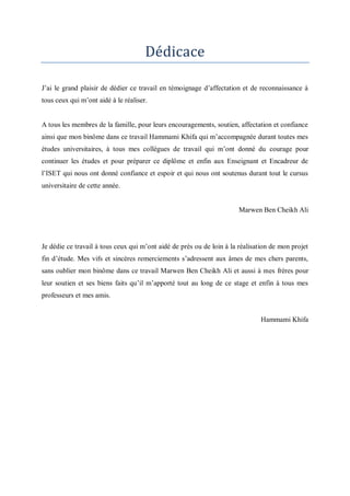 Ce rapport de projet de fin d'études présente la mise en place d'un pare-feu open source, Pfsense, dans le cadre de la Tunisie Trade Net pour assurer la sécurité de leur réseau informatique. Les différentes sections du document abordent la configuration, la validation, et les tests des fonctionnalités du système proposé, ainsi que des remerciements pour le soutien reçu durant le projet. Le document se compose de plusieurs chapitres traitant de l'historique de l'entreprise, de l'étude de l'existant et des méthodologies employées pour le déploiement de solutions sécurisées.