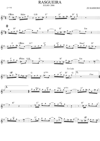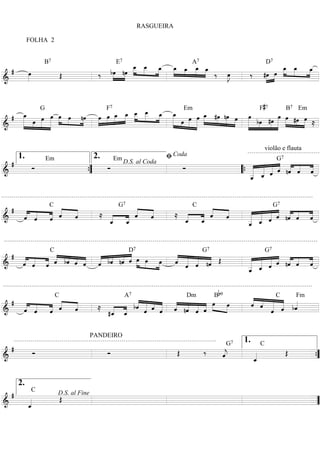 Le document semble être une partition musicale avec diverses notations et symboles pour des accords. Il contient des sections répétitives et des indications pour les interprètes, notamment pour des instruments tels que la flûte et le violon. Les éléments tels que des coda et des instructions de d.s. (dal segno) sont également présents.