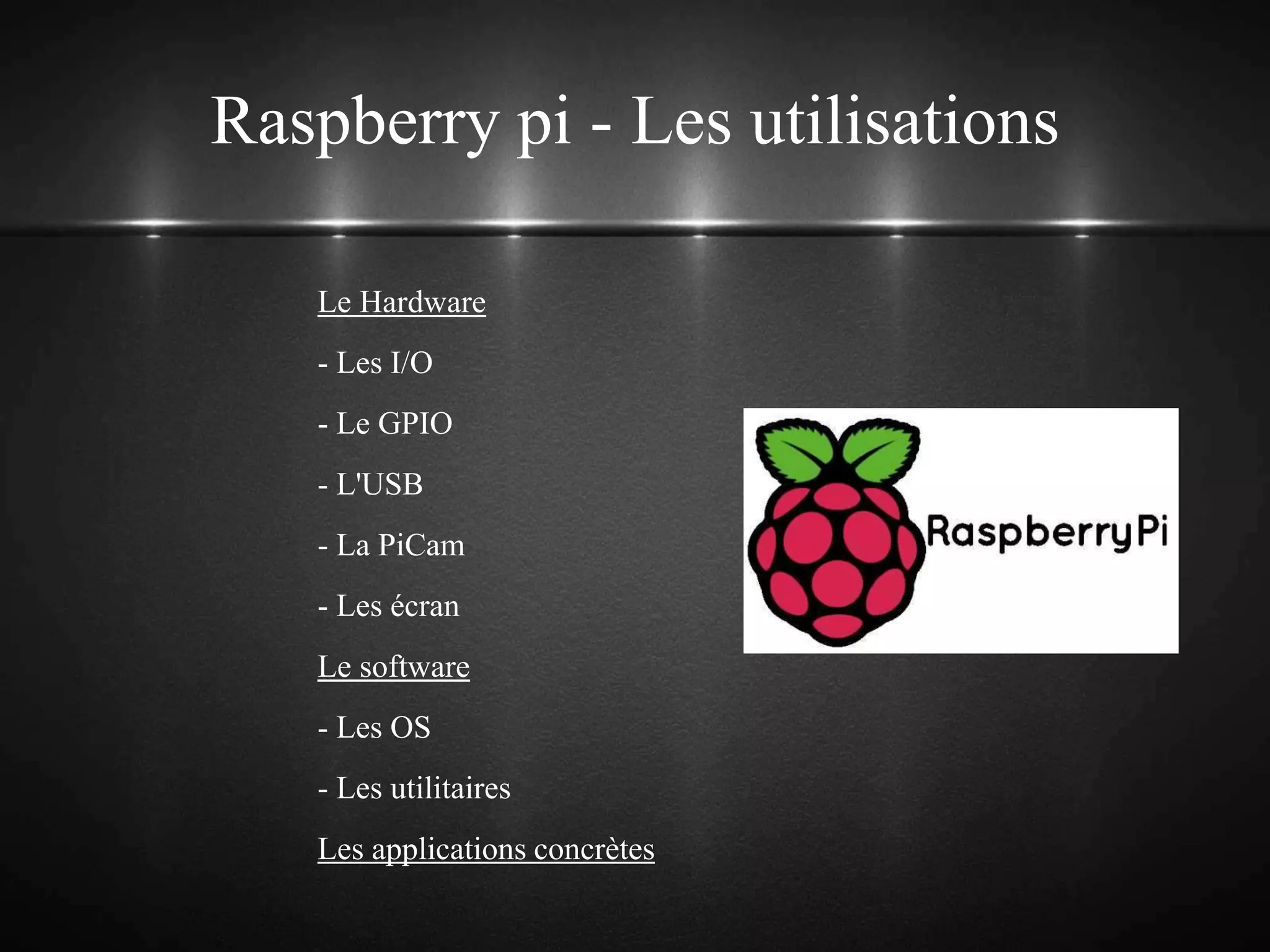 Le document traite des différentes utilisations du Raspberry Pi, en abordant ses composants matériels tels que les ports GPIO, USB et caméra, ainsi que des systèmes d'exploitation comme Raspbian et d'autres alternatives. Il présente également diverses applications concrètes faisant usage de cet appareil, incluant le monitoring, les services web et l'automatisation. Enfin, il mentionne des ressources utiles pour les utilisateurs du Raspberry Pi.