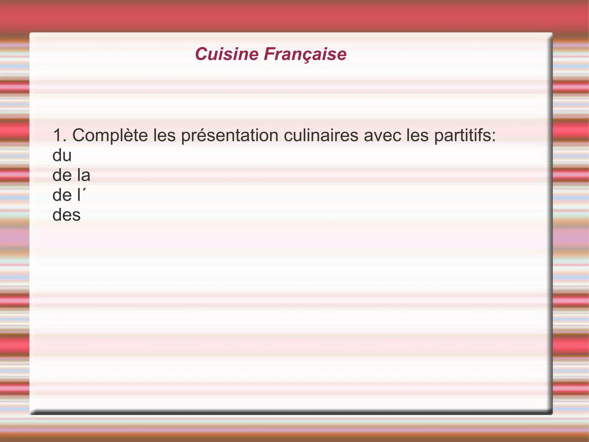 Le document présente des recettes classiques de la cuisine française, notamment le boeuf bourguignon, la quiche lorraine et la ratatouille, en spécifiant les ingrédients nécessaires. Il inclut également des indications sur les plats typiques par région. Cette synthèse met en avant les éléments essentiels pour réaliser ces plats emblématiques.