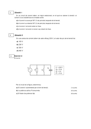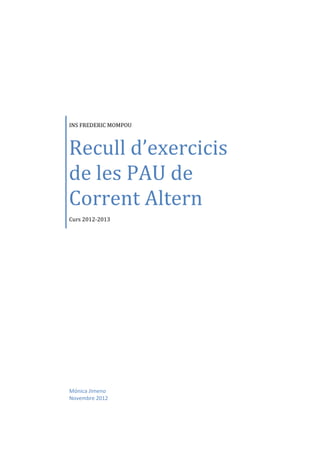 Le document est un recueil d'exercices sur les circuits de courant alternatif. Il a été élaboré par Mónica Jimeno pour le cours 2012-2013. Il contient une liste numérotée d'exercices allant de 1 à 43.