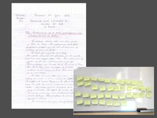 Le document traite de l'adaptation d'un modèle pour l'écriture indépendante, en détaillant l'organisation et les impressions d'une expérience professionnelle. Il inclut des activités de rédaction et des structures de phrases pour aider les élèves à pratiquer une langue étrangère. Le texte mentionne également des mini-livres et des volets d'écriture pour encourager la créativité des élèves.