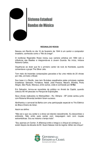 Reginaldo Rossi, né à Recife le 14 février 1944, est un chanteur et compositeur brésilien surnommé le 'roi du brega'. Avec plus de 300 compositions et une carrière débutée en 1964, il est célèbre pour ses spectacles à fort impact, notamment des performances massives au carnaval et des concerts en différentes capitales du pays. Il se décrit humblement comme un simple chanteur, se concentrant sur l'authenticité et la connexion avec son public.