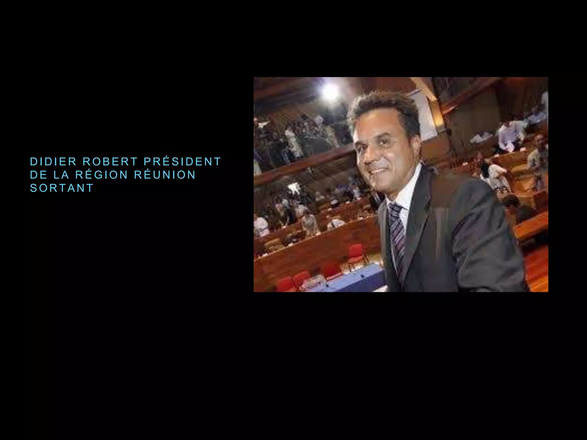 Didier Robert, président sortant de la région Réunion, se félicite de la participation de 40,36% au premier tour des élections. Huguette Bello et Thierry Robert s'unissent pour contrecarrer sa politique, soutenus par des listes de gauche et du centre. Trois candidats principaux se disputent les élections : Didier Robert, Huguette Bello et Thierry Robert.