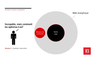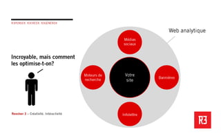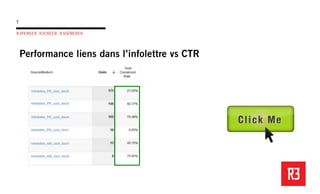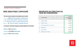 Le document traite de l'optimisation des ventes par la mesure des performances d'un écosystème numérique, en se concentrant sur des indicateurs clés tels que le taux de conversion et la valeur du panier d'achat. Il souligne l'importance d'analyser les données pour améliorer les conversions et la performance des réseaux sociaux. En fin de compte, il indique que la majorité des nouveaux visiteurs d'un site ne convertissent pas lors de leur première visite, ce qui pose des questions cruciales sur l'efficacité des stratégies mises en place.