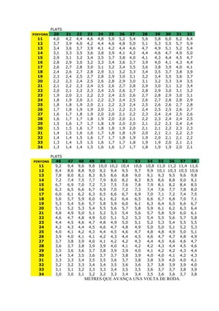 Le document contient des données numériques sur des plats de pignons correspondant à des évaluations de 1 à 11 sur différentes échelles. Les valeurs varient de 1,0 à 11,0 et montrent des tendances d'évaluation sur plusieurs points. Les chiffres semblent représenter les notes attribuées à ces plats sur une période donnée.