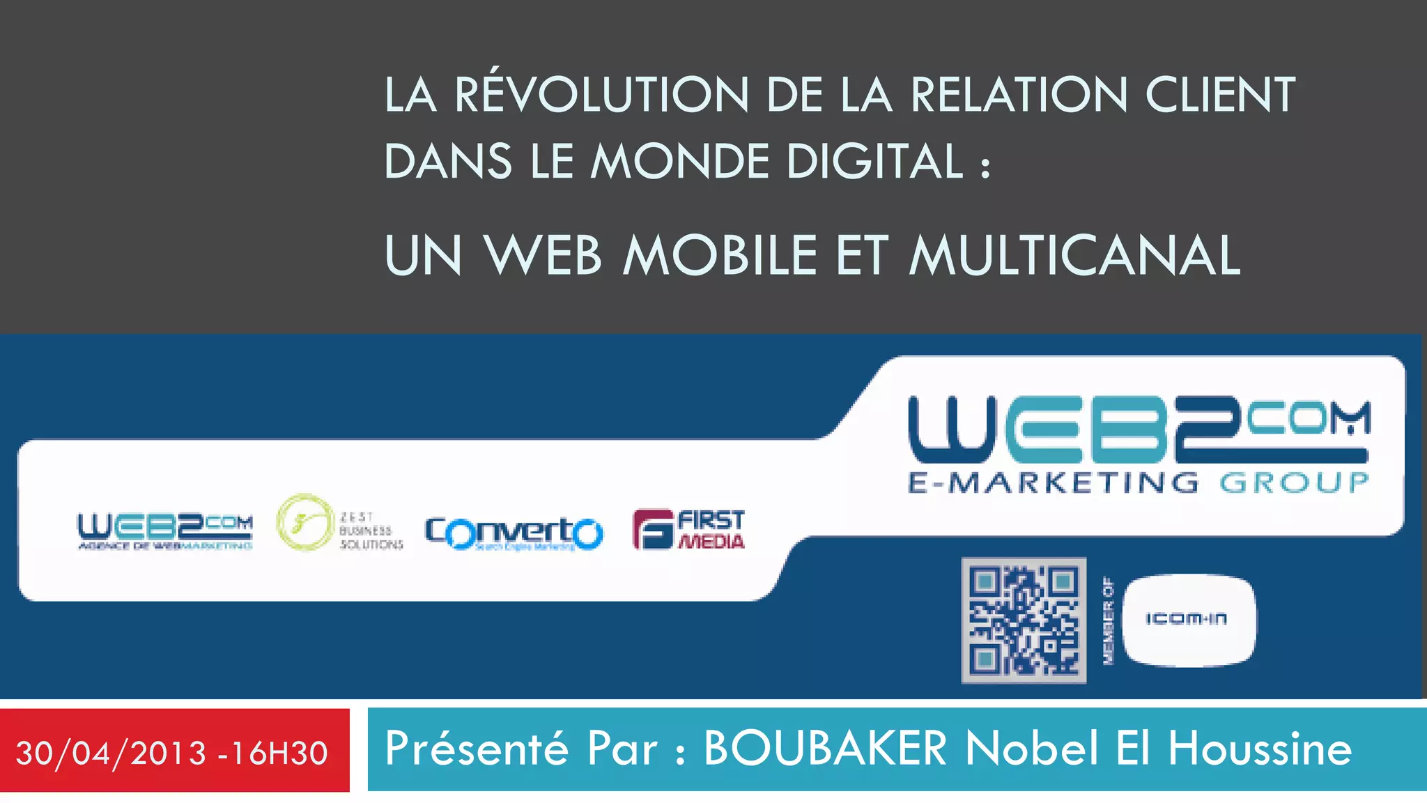 Le document traite de la gestion de la relation client (GRC) dans un contexte digital, en abordant les outils et techniques pour fidéliser les clients à travers un service optimal. Il met en lumière l'importance croissante des canaux mobiles et des réseaux sociaux, ainsi que l'intégration des nouvelles technologies comme l'emailing responsive et les codes QR dans la stratégie marketing. Enfin, il souligne l'efficacité du SMS et du marketing proxi via Bluetooth dans la communication avec les consommateurs.