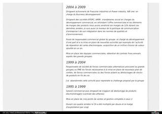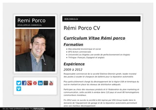 Rémi Porco est un professionnel du développement commercial avec une formation en baccalauréat économique et un BTS en action commerciale. Il a dirigé plusieurs entreprises en charge du développement commercial et a contribué à l'amélioration des marges et à la mise en place de nouvelles activités. Son expérience inclut la responsabilité commerciale globale et la mise en place de réseaux de distribution en Amérique du Nord et du Sud.