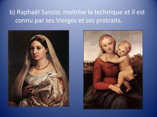 La Renaissance, particulièrement durant le 'quattrocento' et le 'cinquecento', voit l'essor des arts en Italie avec des mécènes influents comme les Médicis et le pape Jules II. L'art de cette période, inspiré par l'Antiquité, se manifeste à travers l'architecture, la sculpture et la peinture, avec des figures emblématiques telles que Léonard de Vinci, Michel-Ange et Raphaël. Cette période marque un tournant majeur dans l'histoire de l'art, atteignant son apogée avec la Haute Renaissance et influençant également l'art en Europe du Nord.