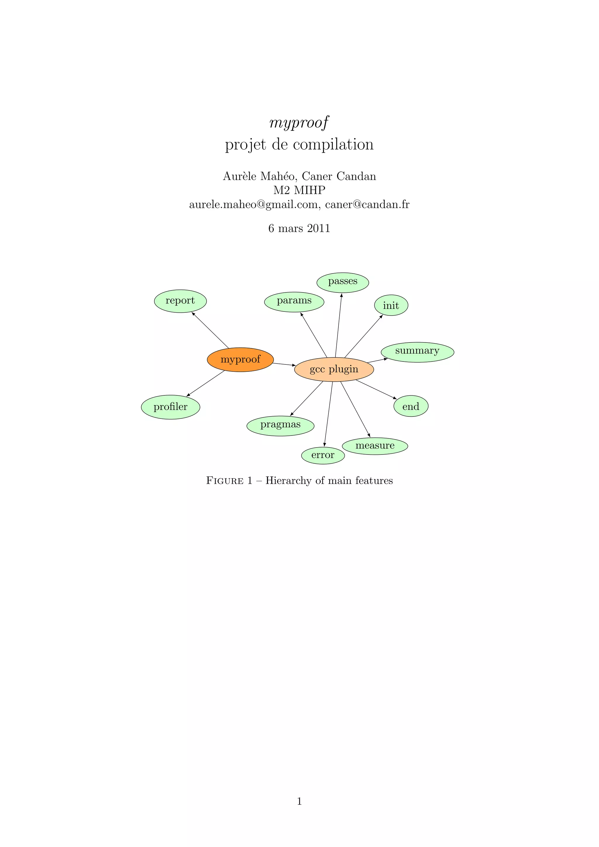Le projet MyProof est un logiciel de profiling qui offre une instrumentation et une mesure des applications, en s'appuyant sur un plugin GCC et une interface modulable. Il permet de gérer les directives pragma, d'effectuer une instrumentation statique et dynamique, ainsi que de traiter le multi-threading. Le document détaille les fonctionnalités, la structure, et les différentes étapes du projet, notamment le parsing et la gestion des erreurs.