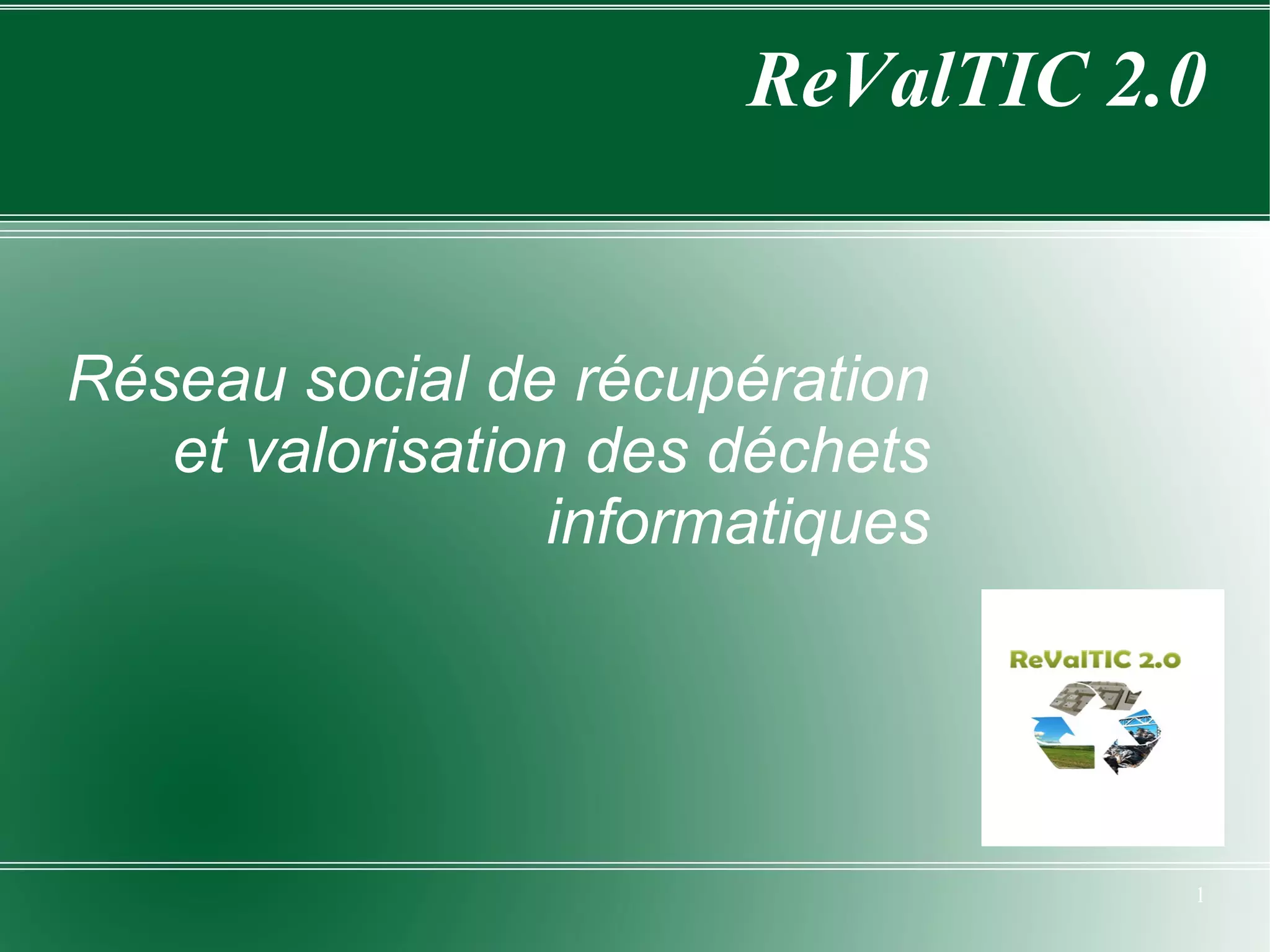 Revaltic 2.0 est un réseau social visant à la récupération et à la valorisation des déchets informatiques face à l'augmentation des volumes de déchets et à un recyclage encore peu ancré dans les habitudes. Cette plateforme permet de gérer les circuits de récupération, géolocalise les déchetteries et met en relation donneurs et receveurs de matériels pour leur offrir une seconde vie. L'application est disponible sur Android et iPhone et promeut des actions sociales, culturelles et environnementales.