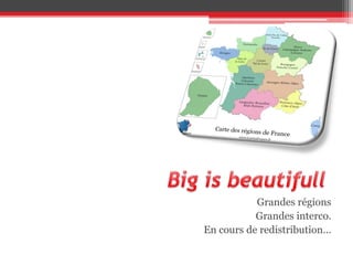 Le document traite du paradoxe entre l'efficacité et la qualité dans la redistribution des grandes régions et intercommunalités. Il aborde des thèmes tels que le redécoupage territorial, la solidarité entre départements, et les finances locales, tout en plaidant pour une mutualisation accrue des ressources. Enfin, il souligne l'importance d'un développement territorial équilibré et des services publics.