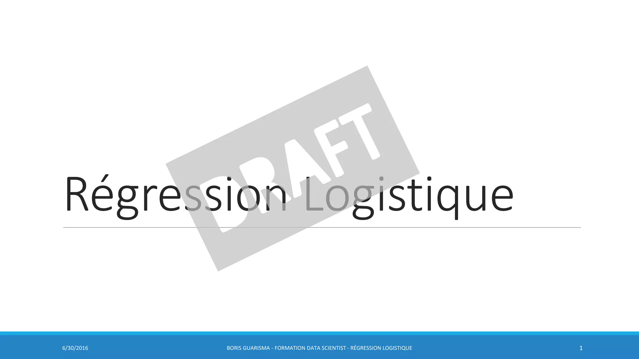 La régression logistique est une méthode utilisée pour prédire une variable catégorielle à partir de descripteurs explicatifs. Elle utilise une fonction logistique pour estimer les probabilités d'appartenance à différentes classes, permettant ainsi de calculer des rapports de chances et d'analyser les effets des variables explicatives. Ce document présente également des applications concrètes, des calculs de probabilité et l'évaluation de modèles via des mesures telles que la matrice de confusion et la courbe ROC.
