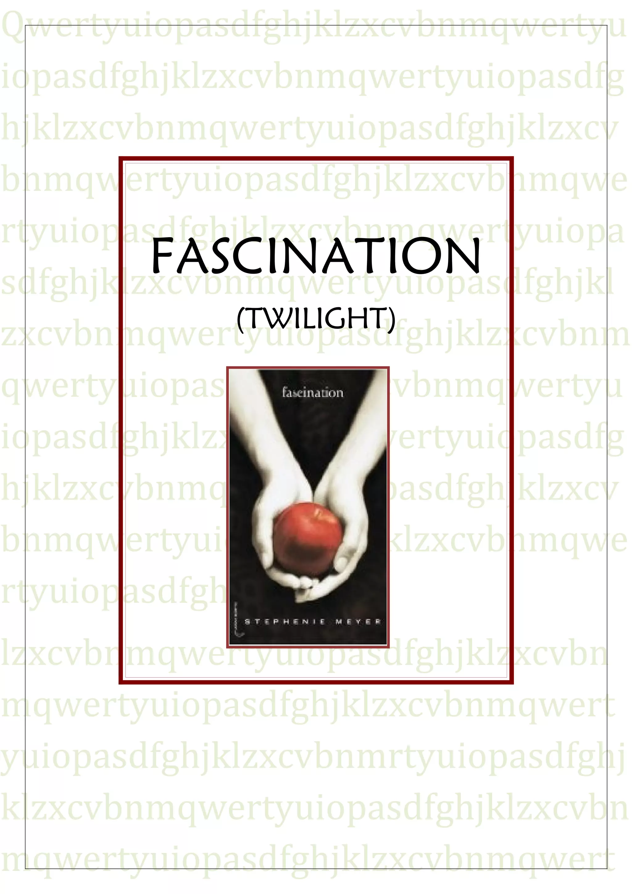 Fascination, le premier tome de la saga Twilight de Stephenie Meyer, raconte l'amour impossible entre Bella Swan, une humaine, et Edward Cullen, un vampire. L'histoire se déroule à Forks et met en avant la complexité des relations entre humains et vampires, ainsi que les dangers qui en découlent. Bien que les sentiments entre Bella et Edward soient réciproques, leur amour est menacé par des forces extérieures, illustrant ainsi le conflit central de la série.