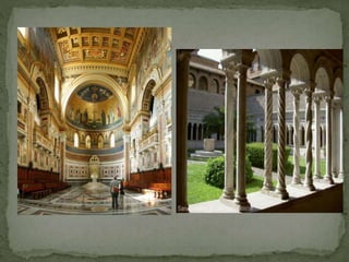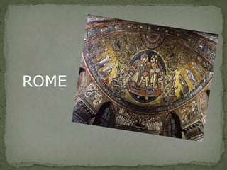 Le document présente divers monuments historiques de Rome, notamment la basilique Sainte-Marie d'Aracoeli, le Forum romain, l'Arc de Titus, et les thermes de Caracalla, mettant en avant leur historique et leur architecture. La chapelle Sixtine et la basilique Saint-Pierre sont également mentionnées comme des chefs-d'œuvre architecturaux, alors que le quartier du Trastevere est décrit comme un lieu authentique et populaire. Enfin, la renommée de Rome pour ses musées et son riche patrimoine culturel est soulignée.