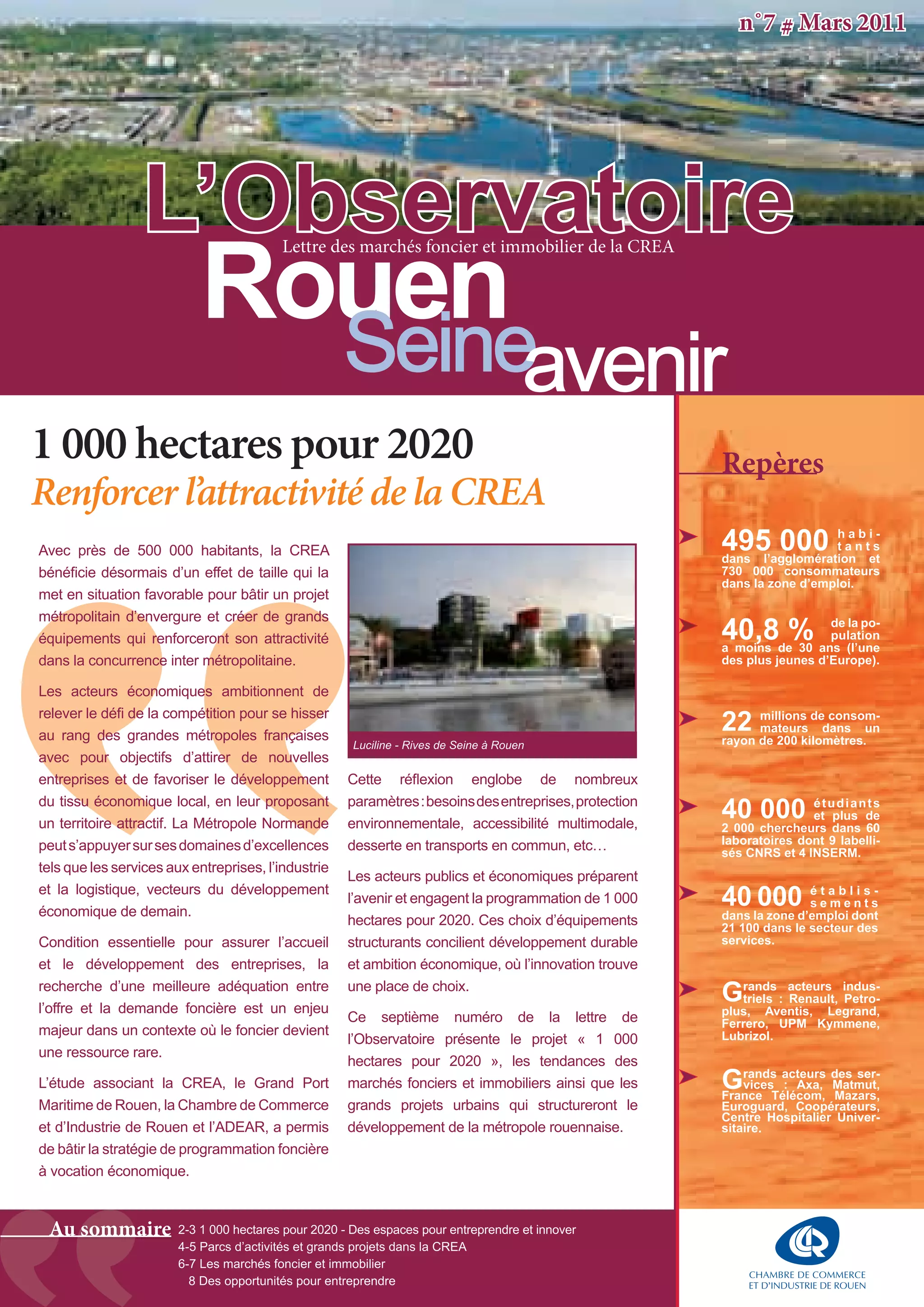 Le projet « 1 000 hectares pour 2020 » vise à développer des espaces économiques dans la CREA, en réponse à une demande croissante pour accueillir de nouvelles entreprises et diversifier le tissu économique. Les infrastructures incluront des parcs d'activités et des grands projets, avec une attention particulière accordée à la durabilité et à l'innovation. L'étude indique un besoin foncier estimé à 478 hectares pour assurer un développement économique équilibré d'ici 2020.