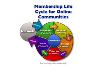 Le document explore la distinction entre réseaux sociaux numériques et communautés, se questionnant sur leur nature et leurs définitions. Il traite de la structure et des processus des communautés, intégrant des études de cas de trois réseaux différents en matière d'interactions et de partage de connaissances. Le contenu souligne l'importance de l'apprentissage participatif et des dynamiques relationnelles au sein des communautés.