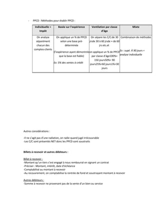 Les chapitres 4 et 5 traitent de l'amortissement et de la perte de valeur des actifs, en incluant des classifications telles que les placements, créances, immobilisations, et charges. Différentes méthodes d'amortissement, ainsi que des préoccupations liées à la comptabilisation des créances douteuses et des produits et charges, sont abordées. Le texte souligne l'importance de présenter les actifs et passifs avec précision dans les états financiers pour refléter la situation réelle de l'entreprise.
