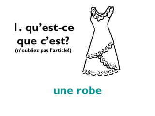 Ce document est une révision d'une unité d'apprentissage de la langue française, comprenant des traductions, des conjugaisons et des questions culturelles. Il aborde des thèmes variés tels que la mode, les magasins, et les comparaisons. Le matériel est destiné à renforcer les compétences linguistiques des apprenants en français.
