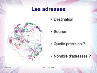 Ce document traite des bases du modèle TCP/IP, des adresses IP et MAC, ainsi que des protocoles de routage. Il aborde également les concepts de routage statique et dynamique, ainsi que la nécessité d'adopter IPv6 face à la limitation des adresses d'IPv4. Enfin, le document discute des protocoles de transport, notamment TCP et UDP, et de leur utilisation pour la communication entre machines.
