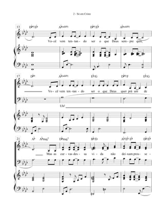 Le document semble être une œuvre musicale, probablement une partition, contenant des instructions pour l'interprétation musicale et des paroles associées. Il mentionne le compositeur Edson Hansen Sant'ana et inclut une signature numérique. Les éléments répétés et les symboles indiquent la structure musicale et les accords à jouer.