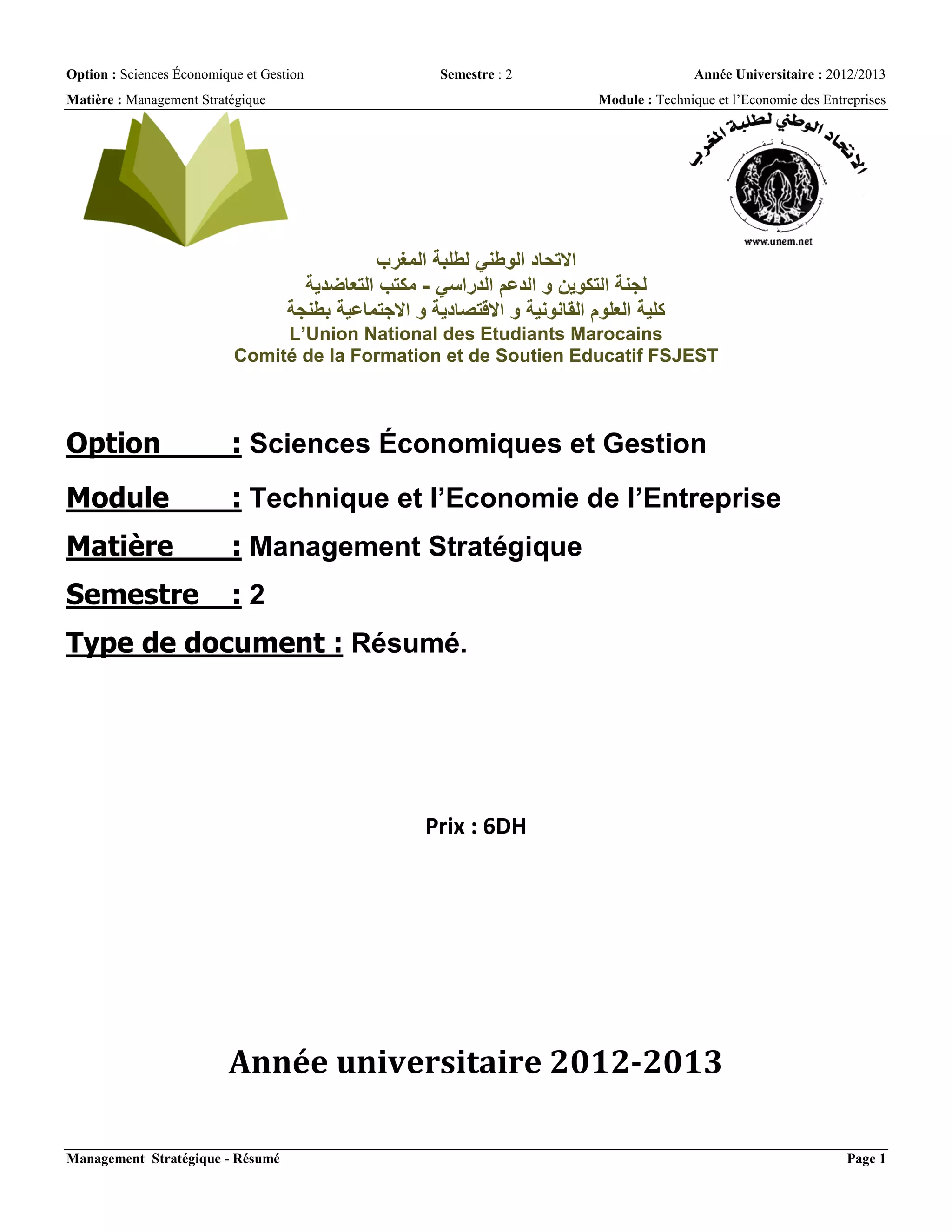 Le document présente un résumé détaillé sur le management stratégique, définissant le rôle du management comme conduite de groupes vers des objectifs organisationnels. Il décrit différentes théories managériales, notamment le taylorisme, le fordisme et les concepts d'Henri Fayol et Max Weber, ainsi que leurs impacts sur la structure et l'efficacité des organisations. Les enjeux du management incluent la création de valeur durable, l'évitement de l'imitation par les concurrents, et le déploiement stratégique des ressources.
