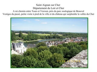 Saint-Aignan-sur-Cher, situé dans le département du Loir-et-Cher, est à mi-chemin entre Tours et Vierzon, près du parc zoologique de Beauval. La ville offre une petite visite à pied de ses vestiges historiques et de son château qui surplombe la vallée du Cher. C'est une destination qui allie nature et patrimoine.