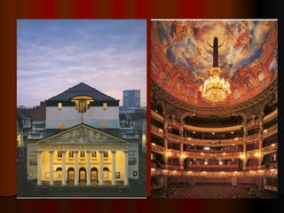 Le document présente les plus belles salles d'opéra du monde, en mettant en avant des théâtres emblématiques tels que le théâtre de la Monnaie à Bruxelles, l'Opéra de Paris, et le Teatro Colón à Buenos Aires. Il mentionne également leur histoire, leur architecture distinctive et leur importance culturelle, tout en abordant les origines du genre lyrique qui remontent à l'Italie du 17ème siècle. Enfin, un lexique est fourni pour expliquer le terme 'opéra'.