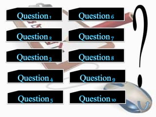 Le document aborde divers sujets liés à l'informatique et à Internet, y compris l'origine d'Internet, le stockage de données, et les formats de fichiers. Il pose des questions sur des éléments tels que la compression de fichiers, les extensions de fichiers et l'utilisation de programmes spécifiques. Ce texte sert de questionnaire sur des connaissances générales en informatique.