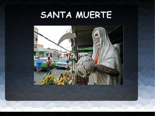 Le document aborde le phénomène de Santa Muerte, un rite festif aux origines floues. Il met en lumière les chapelles dédiées à la mort, soulignant que tous sont égaux devant celle-ci. L'accent est mis sur la nature culturelle et spirituelle de cette tradition.