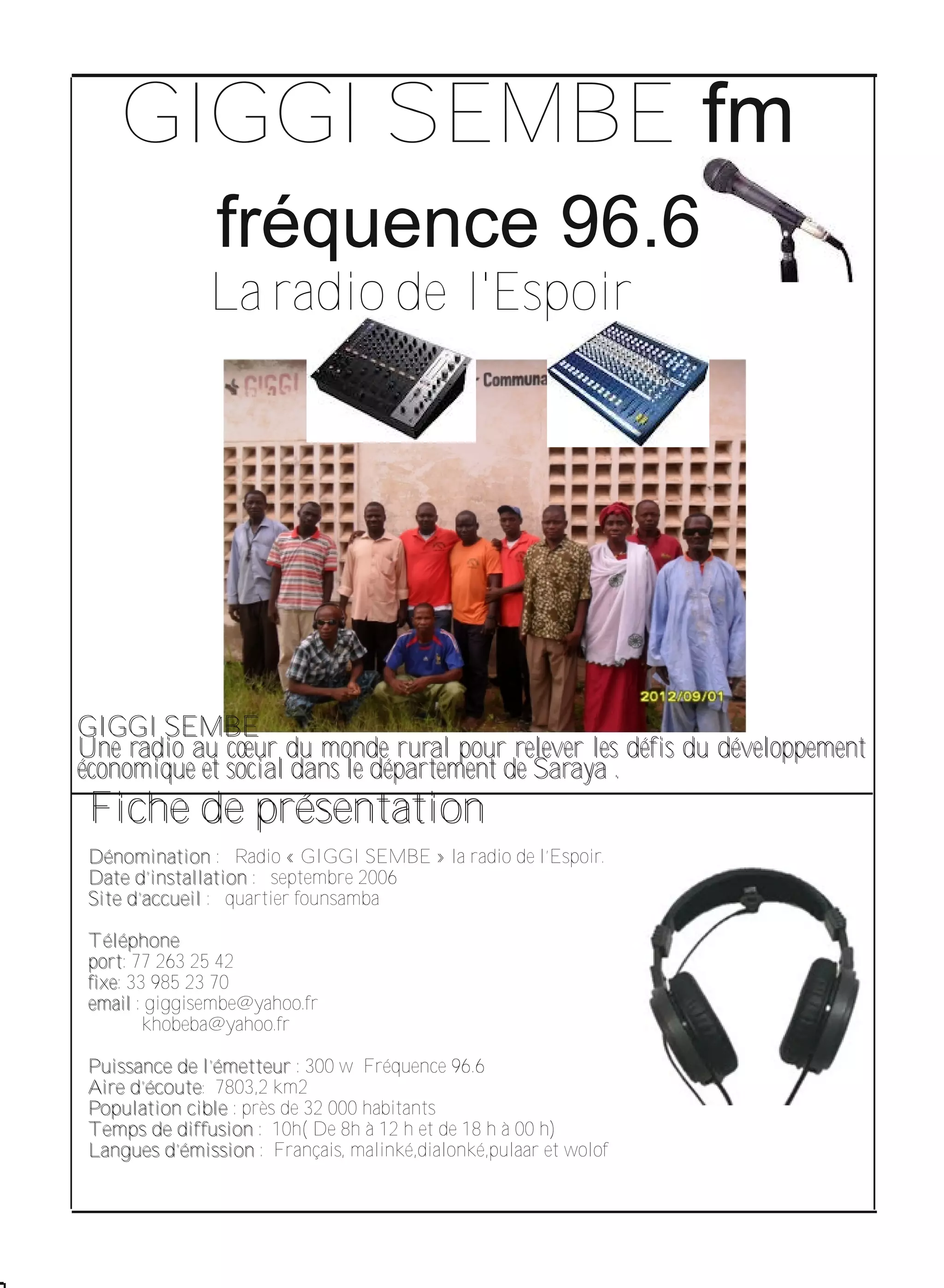 La radio communautaire Giggi Sembe, installée en septembre 2006 à Saraya, vise à relever les défis socio-économiques de la région en informant, sensibilisant et éduquant les populations locales. Malgré les obstacles posés par la concurrence des médias transnationaux et divers problèmes sociaux, la radio s'efforce de donner la parole aux citoyens et de promouvoir le développement local. Elle appelle également à un soutien pour améliorer ses capacités opérationnelles et atteindre ses objectifs de service à la communauté.