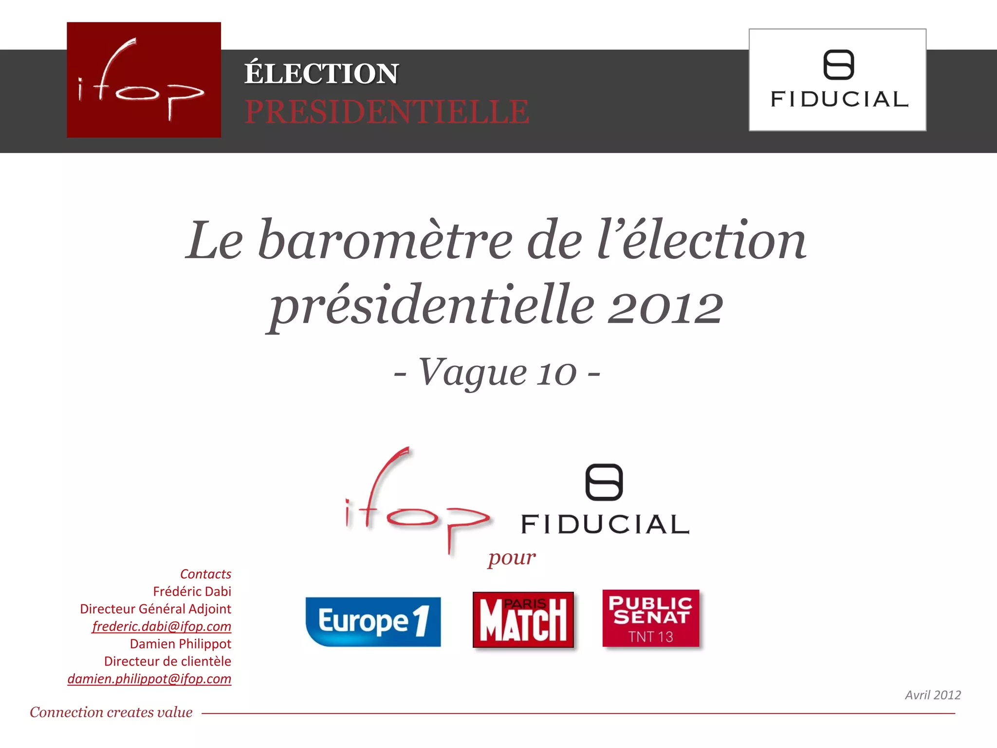 Le document présente une étude IFOP sur l'élection présidentielle de 2012, en se concentrant sur les intentions de vote au second tour ainsi que les reports de voix entre les deux tours. L'échantillon de l'étude comprend 1876 personnes inscrites sur les listes électorales, et les conclusions doivent être interprétées avec prudence, sans prétendre prédire les résultats réels. Les résultats révèlent des tendances marquées, notamment en fonction du sexe, de l'âge et de la profession des électeurs.