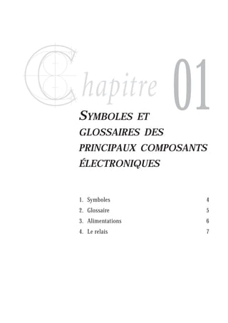 Ce document propose un guide sur les symboles et glossaires des composants électroniques pour la lecture et l'analyse de schémas électriques automobiles. Il aborde l'importance de l'identification du véhicule pour la recherche de pannes et décrit différentes normalisations de schémas, notamment les normes DIN, PSA et Renault. Enfin, il présente des méthodes de sélection et d’interprétation des schémas, essentielles pour comprendre le fonctionnement électrique d'un véhicule.