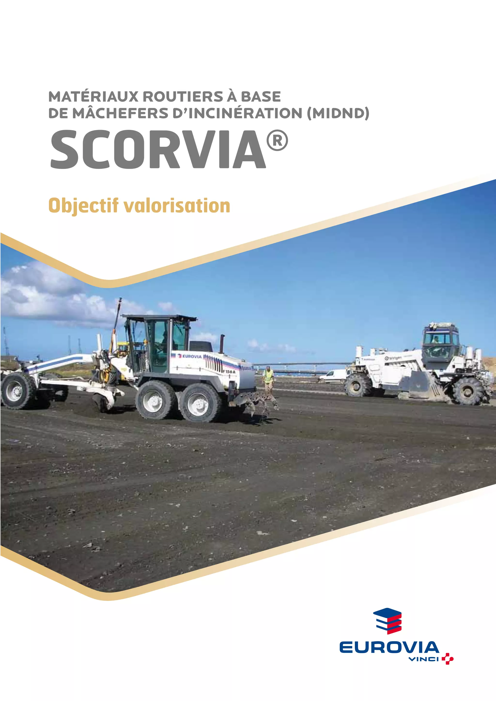 Eurovia valorise les mâchefers d'incinération de déchets non dangereux (midnd) pour produire des matériaux routiers à travers sa gamme Scorvia®, avec plus de 800 000 tonnes recyclées annuellement. Ces matériaux sont soumis à des normes strictes d'utilisation en raison de leur classification environnementale, avec plusieurs applications routières. Eurovia est le leader en Europe dans ce domaine, offrant des solutions écologiques et performantes pour les infrastructures routières.