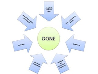 Deux développeurs, Charles Besselievre et Nicolas Chapurlat, partagent leur expérience sur les méthodes Scrum et XP au sein de leur équipe de développement Java. Ils décrivent les processus tels que le backlog, les réunions quotidiennes et les démos de sprint, tout en soulignant l'importance du travail collaboratif et des tests. Enfin, ils abordent les défis du télétravail et les recommandations pour maintenir l'efficacité des équipes distantes.
