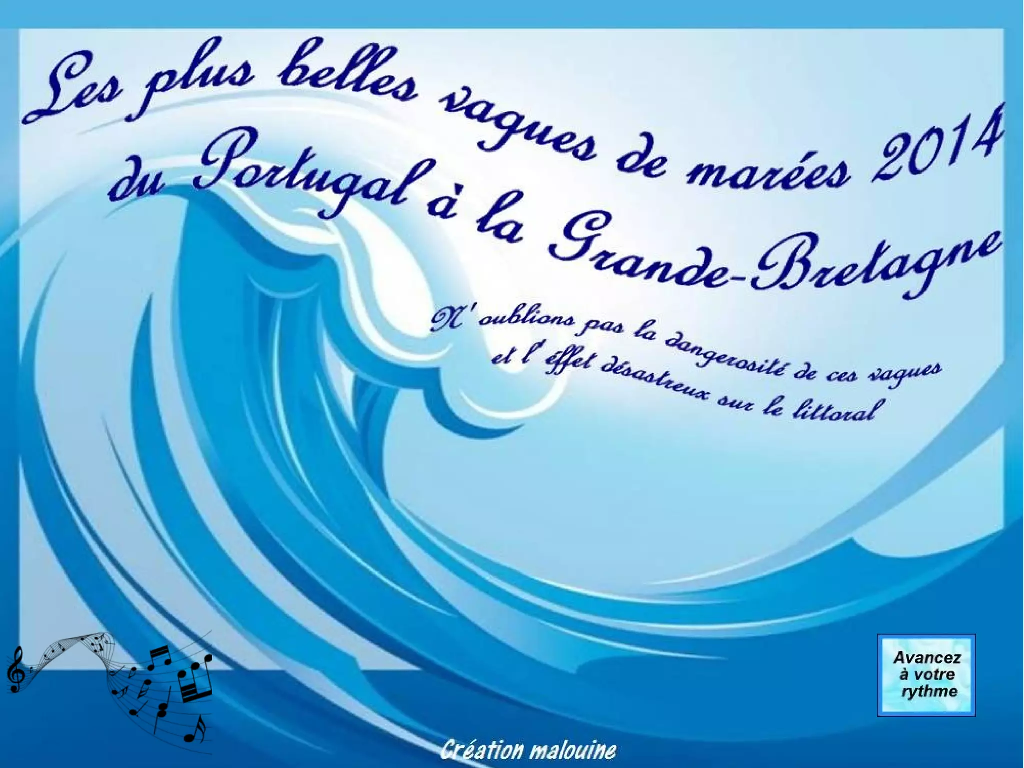 Le document présente une collection de photos et de descriptions de divers paysages côtiers en Espagne, au Portugal, en France et en Grande-Bretagne, mettant en avant des plages, des phares et des endroits touristiques emblématiques. Il souligne des caractéristiques telles que des vagues impressionnantes et des transformations architecturales, tout en remerciant les auteurs des photos. Chaque pays est représenté par des sites spécifiques, illustrant la richesse et la diversité des côtes de l'Atlantique.