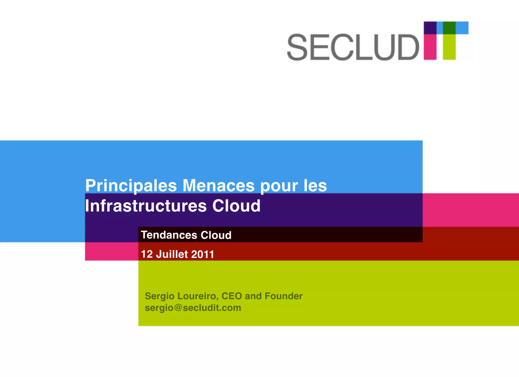 Le document examine les principales menaces pesant sur les infrastructures cloud, telles que l'utilisation abusive des ressources, les vulnérabilités des API et les risques internes. Il souligne l'impact potentiel sur la confidentialité et l'intégrité des données ainsi que les conséquences légales pour les fournisseurs. Plusieurs exemples illustrent ces menaces, mettant en évidence la nécessité de mesures de sécurité renforcées dans les environnements cloud.