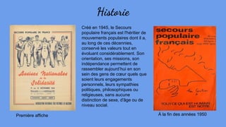 Le Secours Populaire Français, fondé en 1945, se consacre à l'aide solidaire sans distinctions politiques, religieuses ou sociales, visant à garantir les droits fondamentaux à travers diverses campagnes et actions en France et à l'international. Chaque année, il engage des bénévoles et mobilise des fonds pour soutenir des projets tout en développant des initiatives pour l'accès aux vacances et la lutte contre la pauvreté. Grâce à sa diversité et ses valeurs d'indépendance et de solidarité, l'association s'impose comme un acteur essentiel des mouvements de solidarité.
