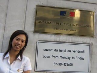Le document présente l'histoire de l'ambassade de France en Thaïlande, fondée initialement comme un consulat avant de devenir une ambassade en 1949. Il détaille le rôle du service de coopération et d'action culturelle, ainsi que les responsabilités de Mme Angkanit Yingprayoon, la secrétaire de ce service, et met en avant ses expériences professionnelles et défis rencontrés. Les activités de l'ambassade incluent la promotion de la langue française et des échanges culturels entre la France et la Thaïlande.