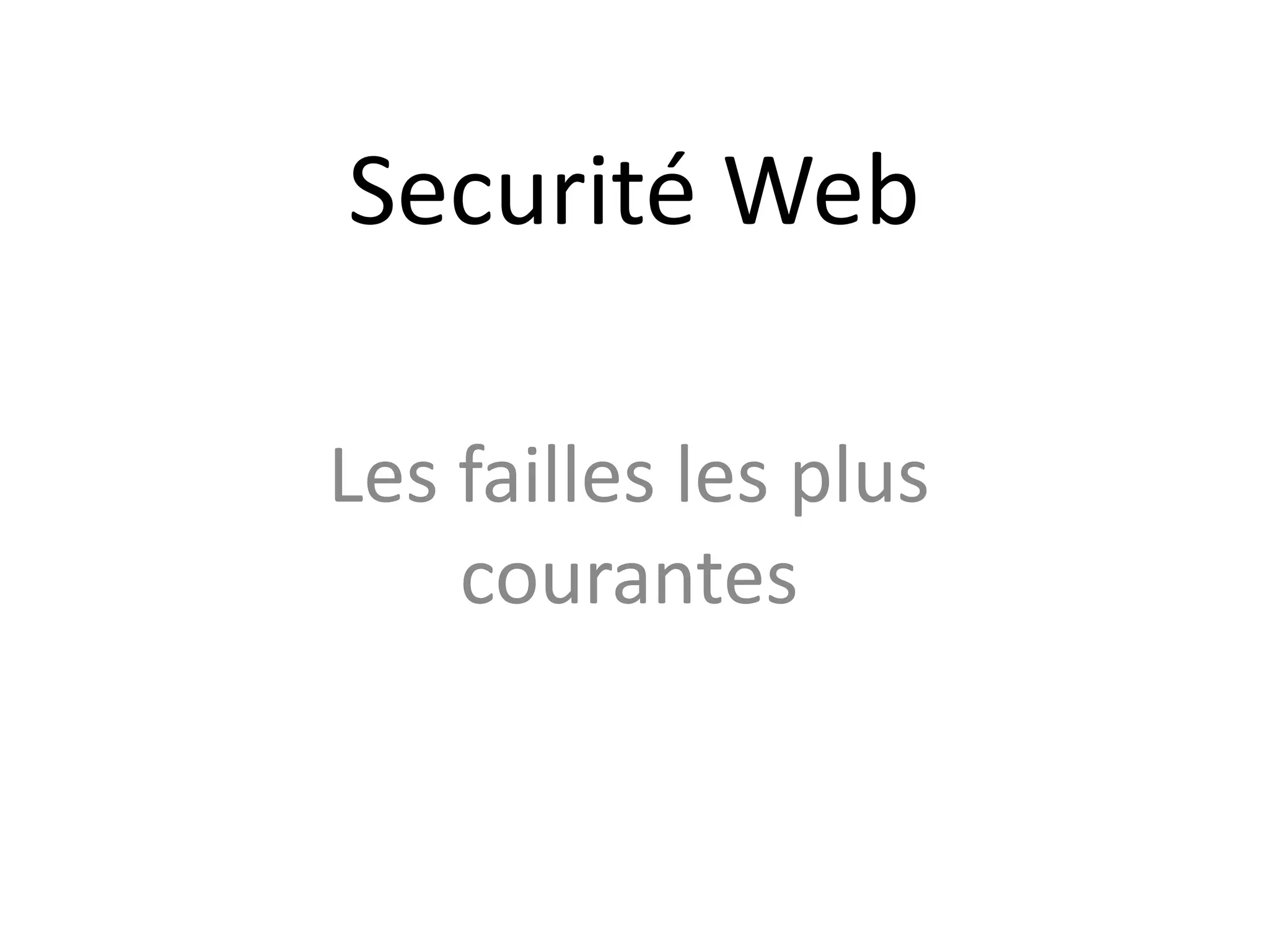 Le document aborde les principales failles de sécurité web telles que XSS, injection SQL, attaques par brute force et failles include. Il explique comment ces failles sont exploitées par les pirates informatiques, les dangers qu'elles posent, et propose des mesures de prévention. Des bonnes pratiques sont également évoquées pour renforcer la sécurité des sites web et protéger les données des utilisateurs.