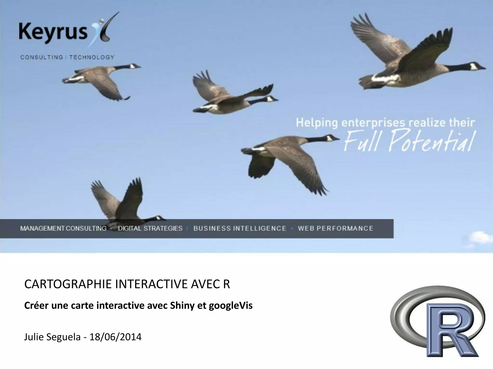 Le document présente l'utilisation du framework Shiny pour créer des applications web interactives avec R, sans nécessiter de compétences en serveurs HTTP ou JavaScript. Il met en avant l'intégration avec le package GoogleVis pour la création de cartographies interactives et mentionne que des mises à jour en temps réel des outputs sont possibles en fonction des inputs utilisateurs. En outre, il souligne la simplicité d'utilisation grâce à des layouts prédéfinis.