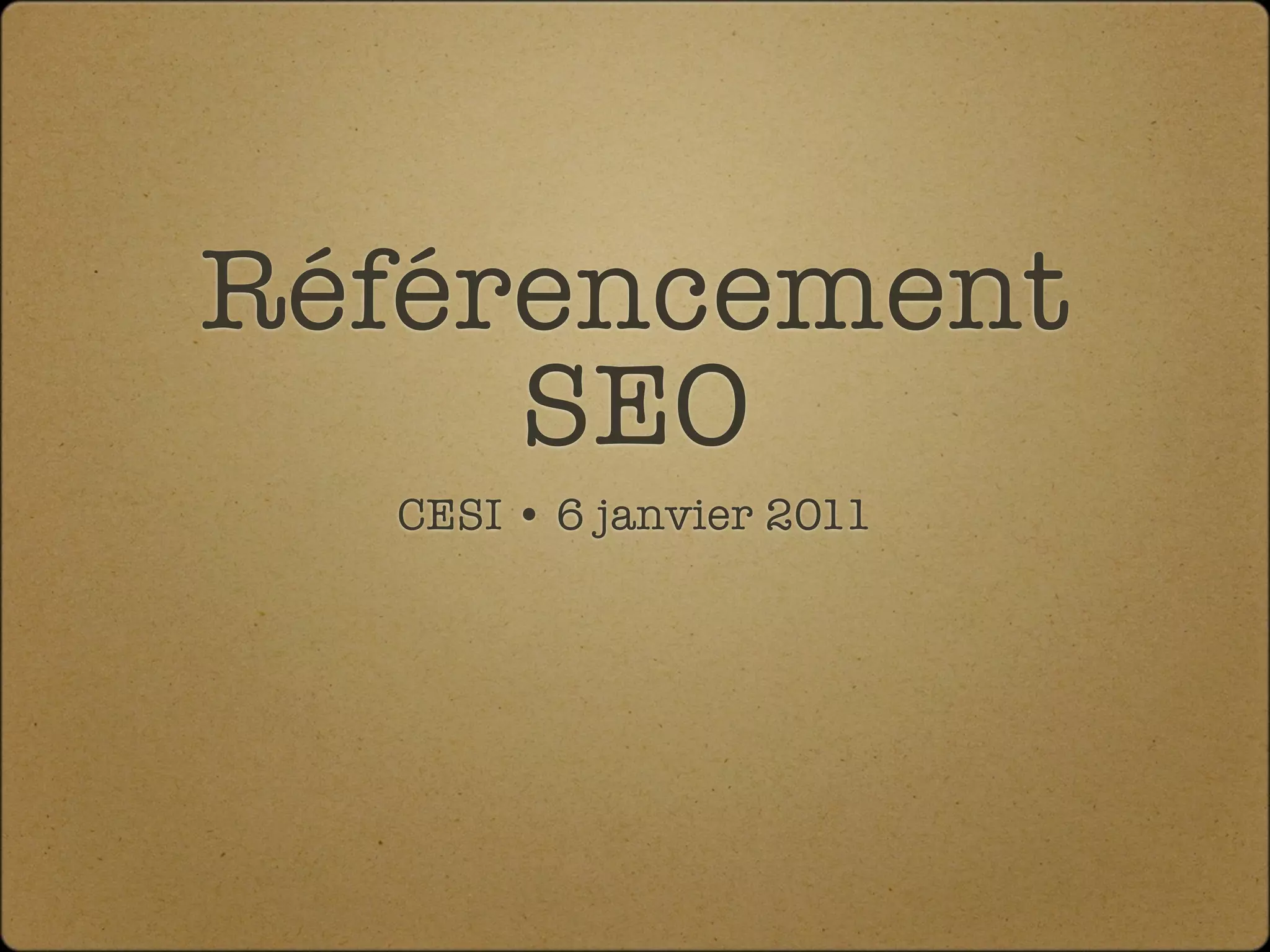 Le document présente un guide complet sur le référencement SEO, détaillant les principes, techniques et bonnes pratiques pour améliorer la visibilité d'un site sur les moteurs de recherche. Il aborde des concepts tels que l'indexation, l'optimisation du contenu, l'utilisation des mots-clés, ainsi que les recommandations spécifiques pour les principaux moteurs de recherche. Les statistiques sur l'utilisation des moteurs de recherche et les conseils pour éviter des techniques de spam sont également inclus.