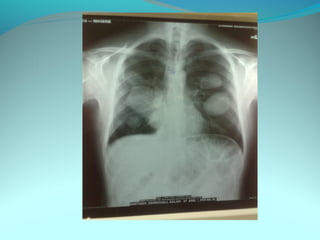 Le document présente une analyse radiologique détaillée des poumons, soulignant diverses anomalies, diagnostics et conditions pathologiques comme le cancer bronchique, la tuberculose, et des kystes hydatiques. Chaque cas est décrit avec précision, incluant des dimensions et des localisations spécifiques des opacités, traits distinctifs, et diagnostics associés. En général, de multiples diagnostics sont évoqués, mettant en évidence la complexité des atteintes pulmonaires observées.
