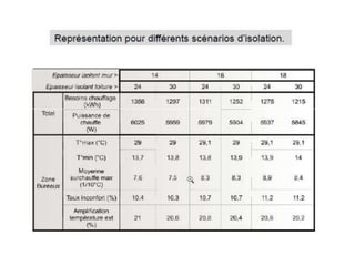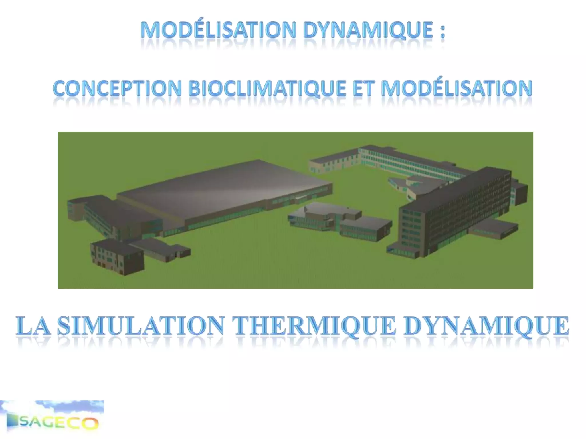 Le document traite de la simulation thermique dynamique des bâtiments, en intégrant divers paramètres tels que la météo, l'occupation et les apports solaires pour optimiser le confort et minimiser les besoins en chauffage. Il aborde également la conception architecturale et les équipements, visant à maîtriser les températures internes et à réaliser des économies d'énergie. Enfin, il souligne l'importance de la modélisation précise pour garantir un confort durable tout en réduisant les surcoûts liés à la climatisation.