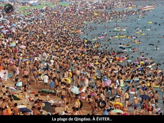 Le document souligne la difficulté de trouver des destinations calmes pour les vacances en raison de la surpopulation et de la pollution. Il liste plusieurs endroits populaires à éviter en raison de la foule, notamment des plages, des stations de métro et des événements en plein air. En contraste, il mentionne que ceux qui apprécient les environnements animés trouveront leur bonheur.