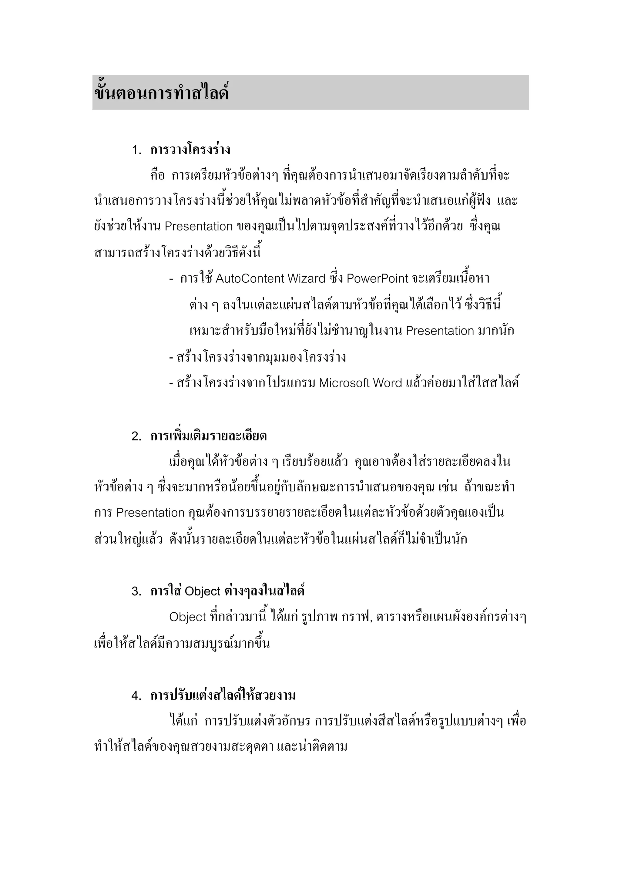 Le document fournit des informations sur l'utilisation de Microsoft PowerPoint et Word pour créer des présentations. Il mentionne également l'automatisation du contenu et les différentes méthodes pour améliorer les présentations. Diverses astuces et recommandations sont abordées pour optimiser l'expérience de création de présentations.