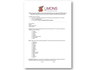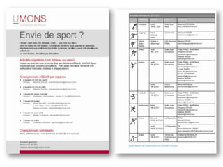 Le document concerne une allocation de 20 000 € destinée aux activités étudiantes. Il fournit un lien vers le site web et des informations de contact par email et sur Facebook. Les informations sont liées à l'université de Mons.
