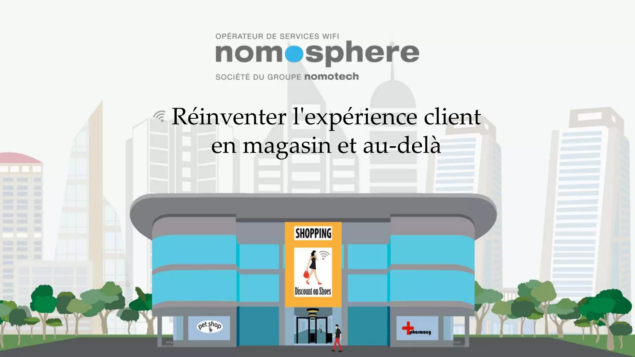Le document présente des solutions de wi-fi pour centres commerciaux, intégrant un parcours client personnalisé et des outils de marketing. Il propose des fonctionnalités telles que des portails captifs, la collecte de données clients, et des systèmes de monétisation. Nomosphere se positionne comme un leader dans la gestion d'infrastructure Wi-Fi, avec des solutions adaptées aux besoins spécifiques des clients.